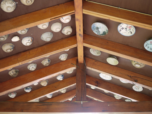 最特別的是一抬頭就能見到為數可觀的瓷碗磁盤全黏在花板上