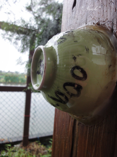 從庭園到屋子裡頭整間店都用貝殼與舊碗盤貼的滿滿的