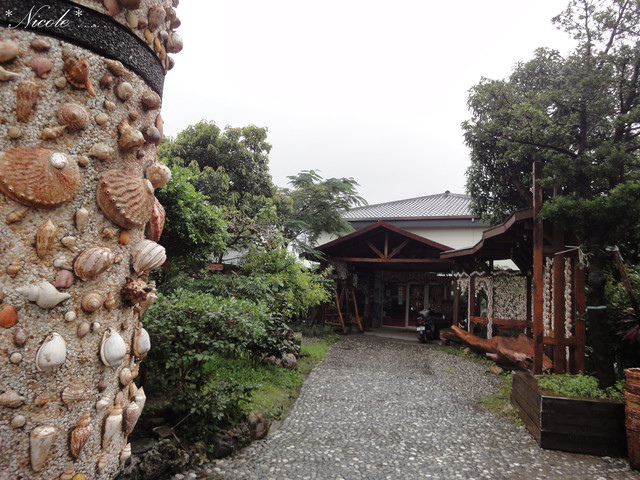 從安農八路轉進來看到一個貼滿貝殼的奇異建築 這就是今天要與大家分享的牛車俥歐~