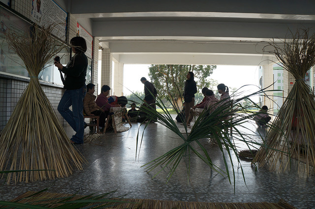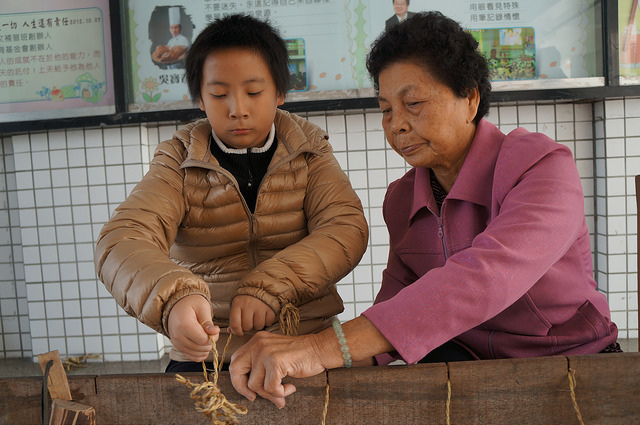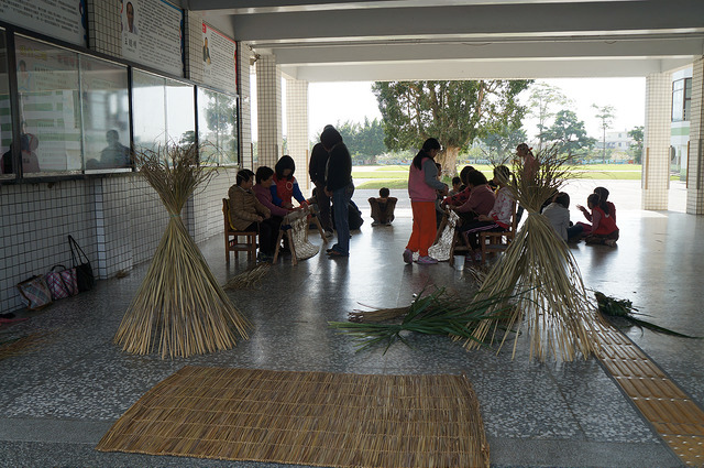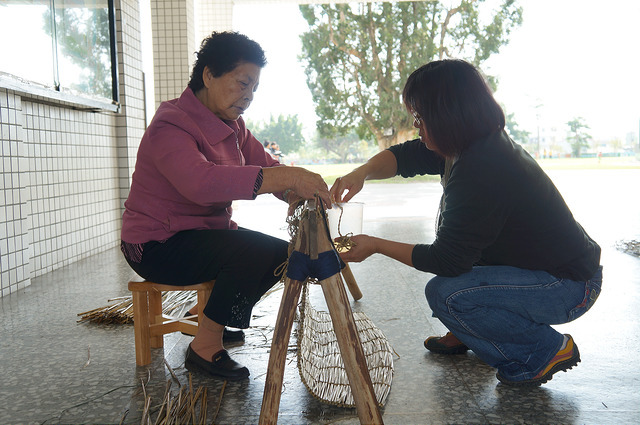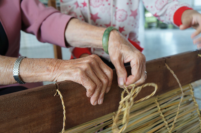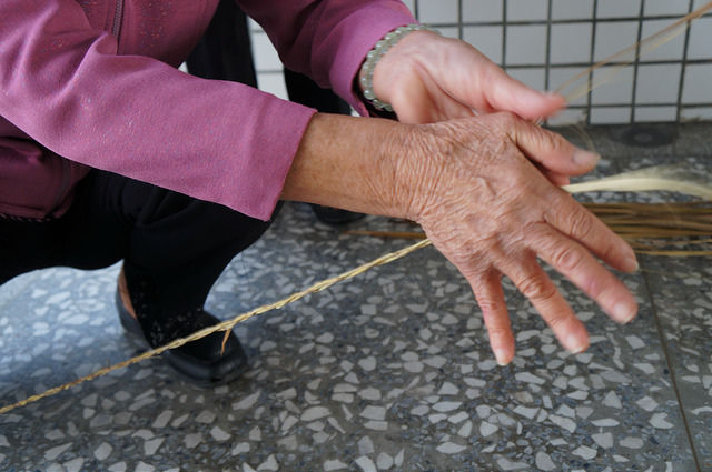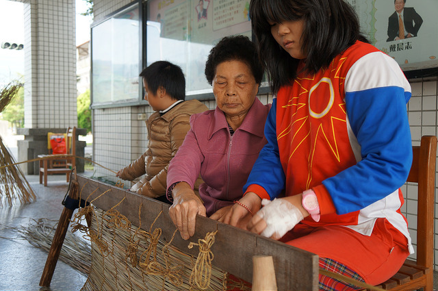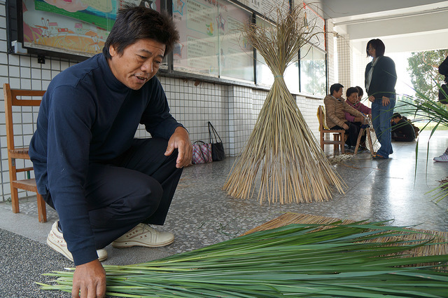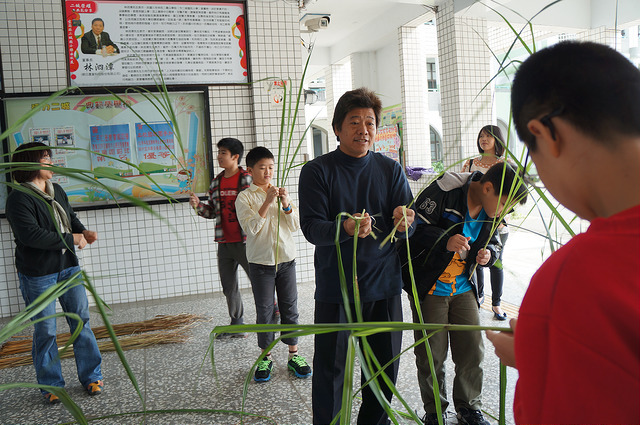 為了讓文化的傳承,林木貴先生請來了當地耆老敎小朋友做芒草編織~