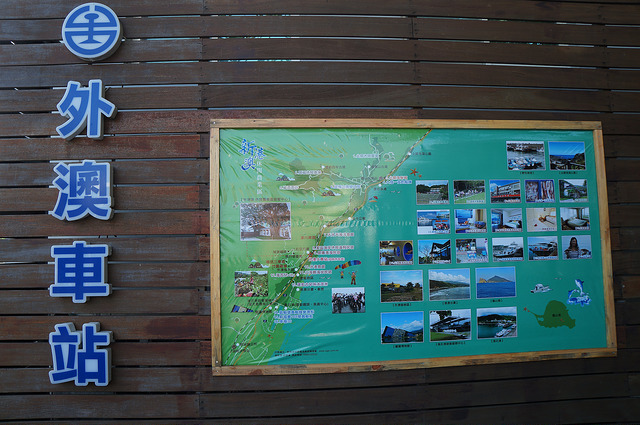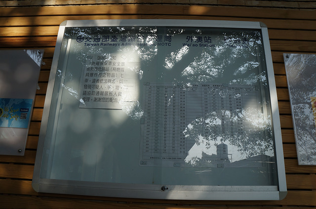 外澳車站很妙!沒有售票亭連個人影都沒有,若不是牆上掛著火車時刻表還真懷疑走錯地方了呢!