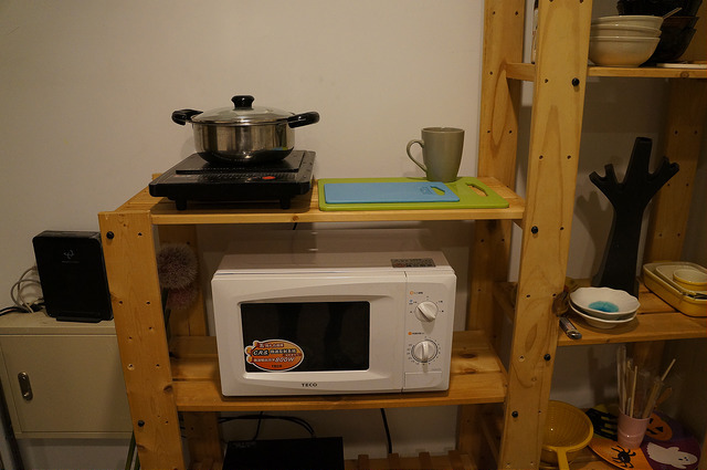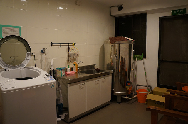 公共的廚房裡面有洗衣機、微波爐 、RO飲用水、 電磁爐等設備~